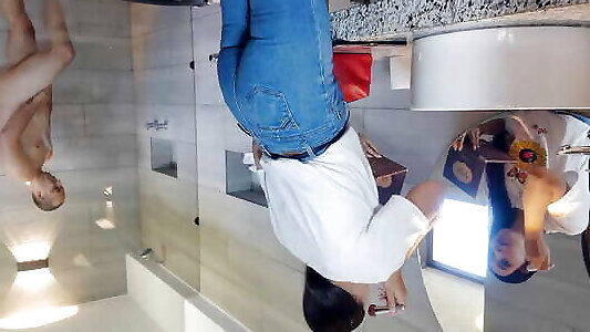 cocente milf sarah vandella mostra fuori il suo culo, mentre ringhiera uomo di carne