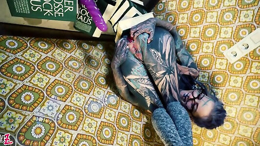 ragazza goth con grandi tette tatuate apre il suo piccolo buco del culo per la prima volta