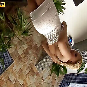 sexy bionda ninfa si prende cura del suo duro sperma-pompa allaperto