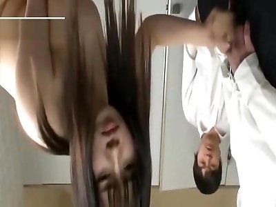 slim black-haired cutie ottiene il suo grouping japane meloni strizzato teso con cinturino