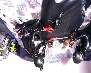 ragazza in lattice con gonfiabile bondage maschera schiaffeggiato