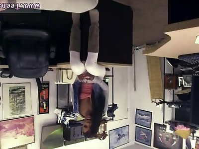 teenie dai capelli neri scatti in ginocchio per un meatpipe