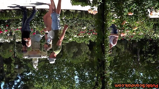 troia madre-in-law allarga le gambe larghe per fare pipì in un parco pubblico