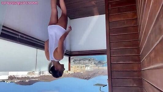 due lesbiche calde si masturbano in una piscina pubblica, paura di essere scoperti