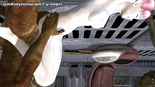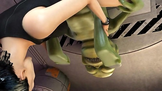 инопланетный секс на звездолете. самка зеленого инопланетянина трахается с большим монстром