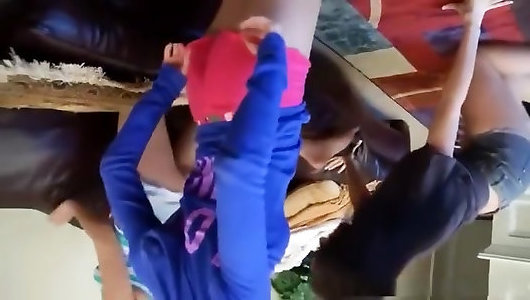 я снимаю ее ноги, потом она снимает мои