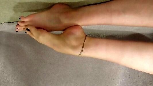 отдайся моим завораживающим ногам с черным лаком для ногтей и кольцами на пальцах ног