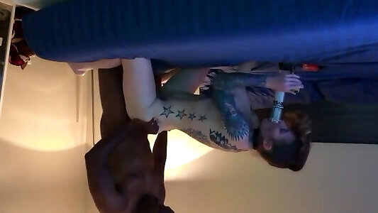 татуированная блондинка дергается, когда она трахает свою киску