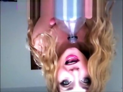 ректальная инъекция, сидящая на корточках на широкой бутылке содовой. первые попытки